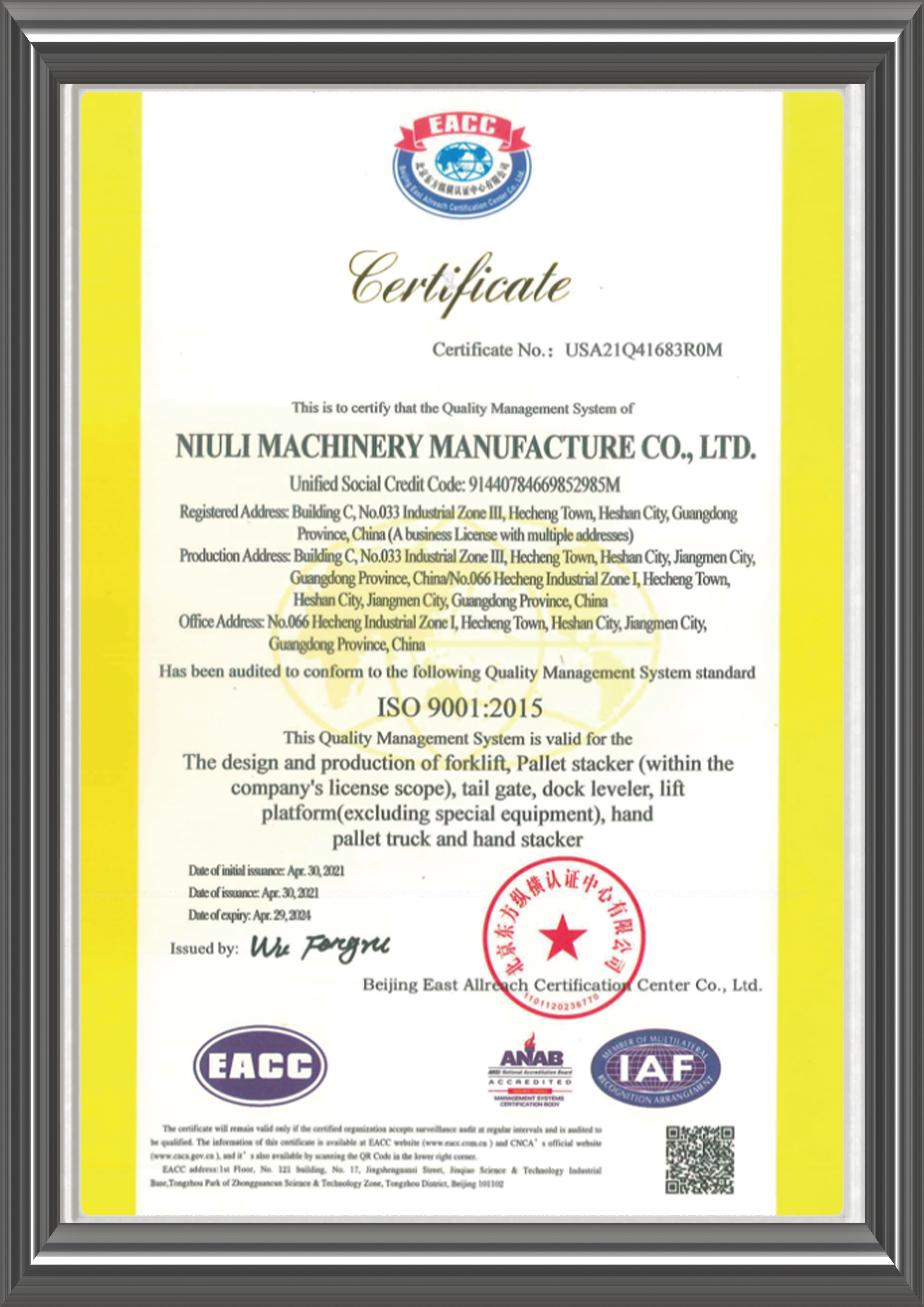 2008: A fábrica mudou-se de Zhongshan Huanpu para a cidade de Heshan e renomeou GUANGDONG NIULI MACHINERY MANUFACTUER CO., LTD